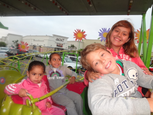 Los niños se subieron a los jueguitos y la pasaron bien. Ni el frio les importo. Despues quisieron subirse al DRAGON, una tipo montaña rusa que era la que iba mas fuerte. Subimos a mis hijos y a las sobrinitas Regina y Ximena de 5 y 3 añitos.