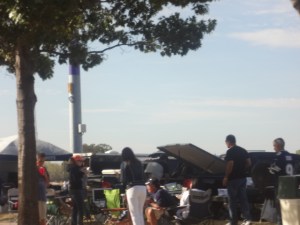 Llegando comienzas a ver el folklore gabacho del Tailgating, que no es mas que “asar carne en el estacionamiento”…