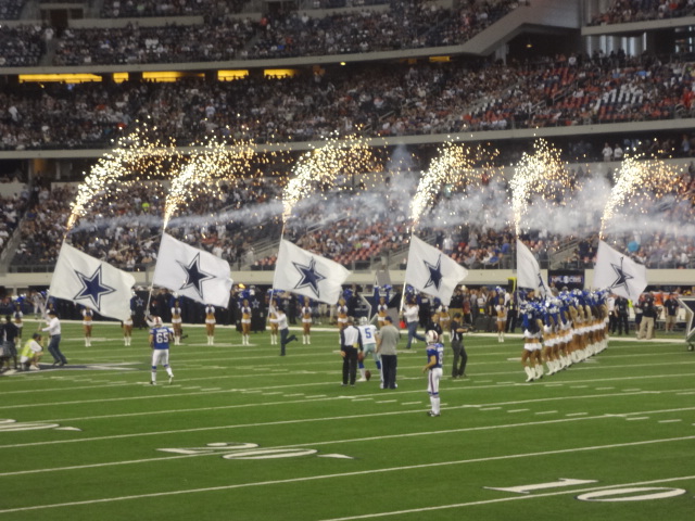 Nos desayunamos un hotdog y una cheve (si ya se, super mal!) viendo a los Cowboys practicar antes del gran juego contra los Buffalo Bills. Conseguimos unos lugares al mero abajo, veiamos a todos los jugadores, los entrenadores, etc.
