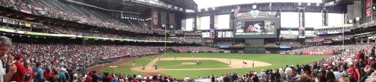 Llegamos al CHASE FIELD. Los que me conocen saben de mi amor a este deporte, desde mis abuelos, mi papi y tios y ahora mi marido e hijo. Se me va el aliento cuando veo las estructuras de los estadios gringos de este deporte. Son una obra de arte con toda la comodidad para que disfrutes del REY DE LOS DEPORTES.