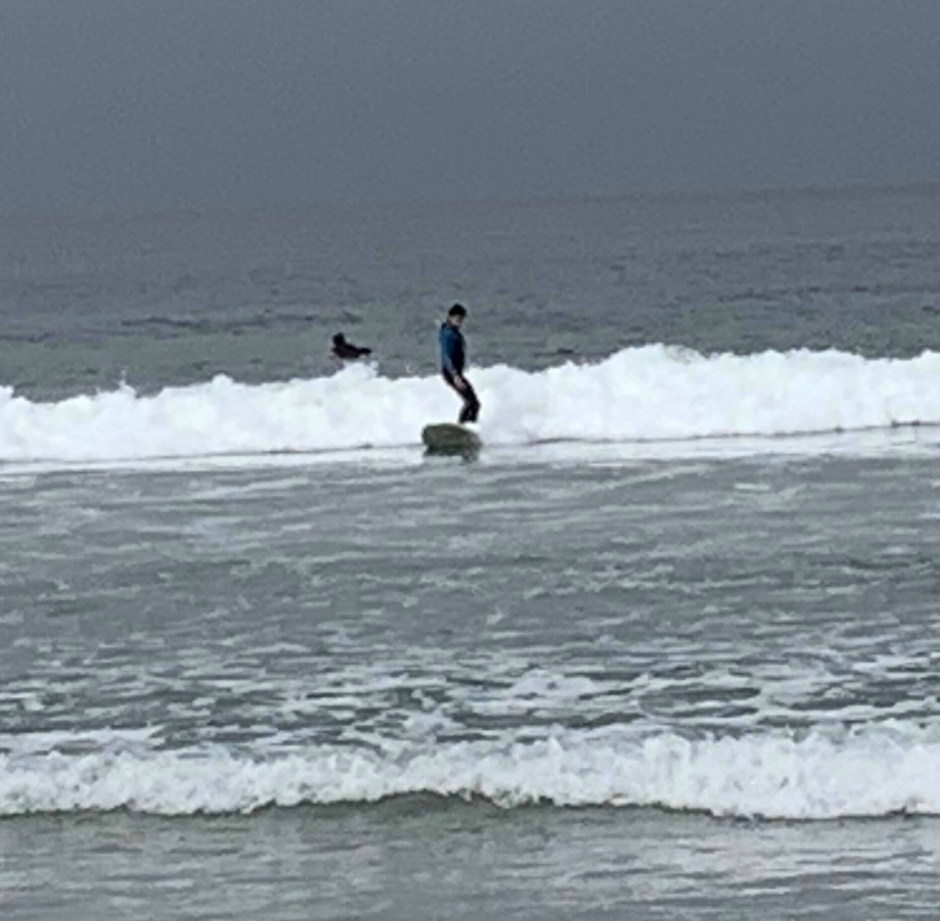 Se veían a lo lejos algunos ‘surfeadores’ (No sé si así se dice en español sin ser ‘pocha’).